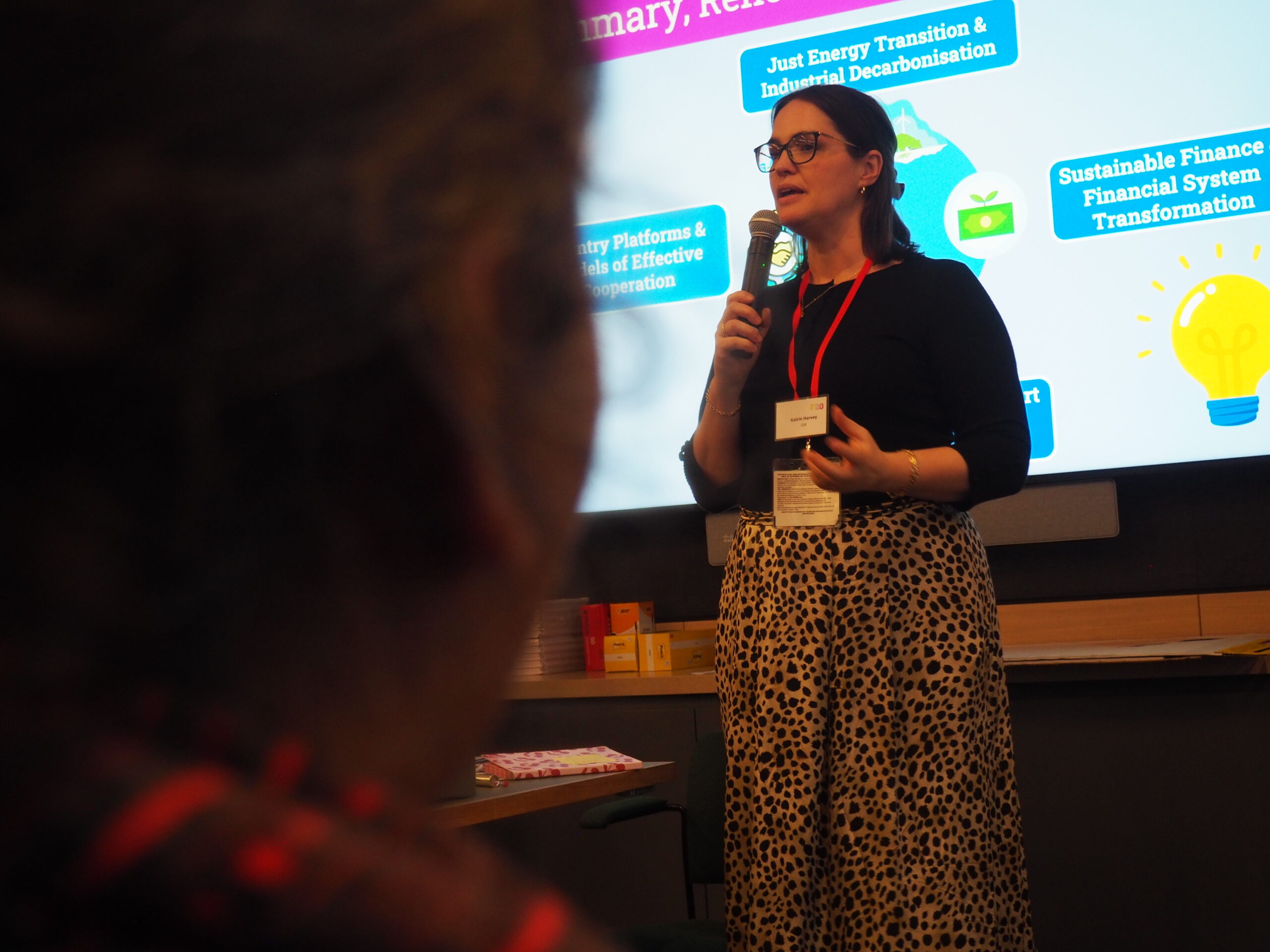 The panel discussion featured a lively and insightful conversation between Rosalind McKenna, (Senior Associate in the CEO Office, Children’s Investment Fund Foundation), Omar Bargawi, (Deputy Director and Head of Department for Development Policy and Partnerships, UK Foreign, Commonwealth & Development Office), and Manon Vigier (Policy Advisor for Private Sector and Development, French Ministry for Europe and Foreign Affairs). The panellists’ insights into G20 and G7 work, approaches to solidarity, and the balance between being ‘realistically ambitious and ambitiously realistic’ informed the World Café sessions.